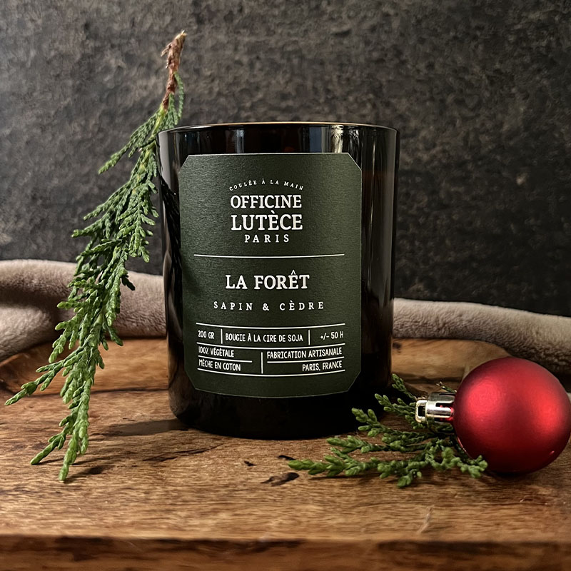 Nous vous proposons la bougie La Forêt qui diffuse un parfum frais de Cèdre & Sapin.