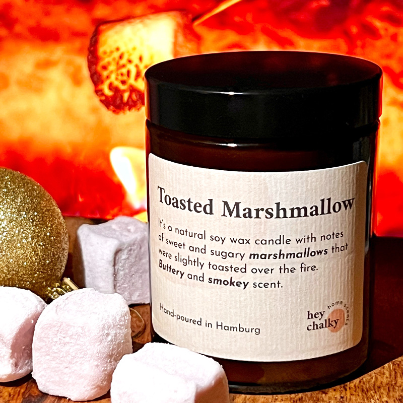 Ce parfum a les notes délicieuses et sucrées de guimauve avec un soupçon de fumée, comme les nuits d’hiver à rôtir des guimauves sur le feu.