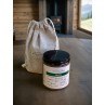 Contenance: 200 g. La bougie est livrée avec un pochon en lin réutilisable.