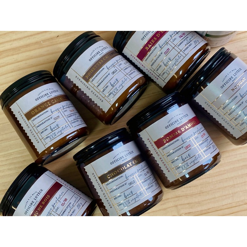 Bougie parfumée à la cire de soja coulée à la main en France.