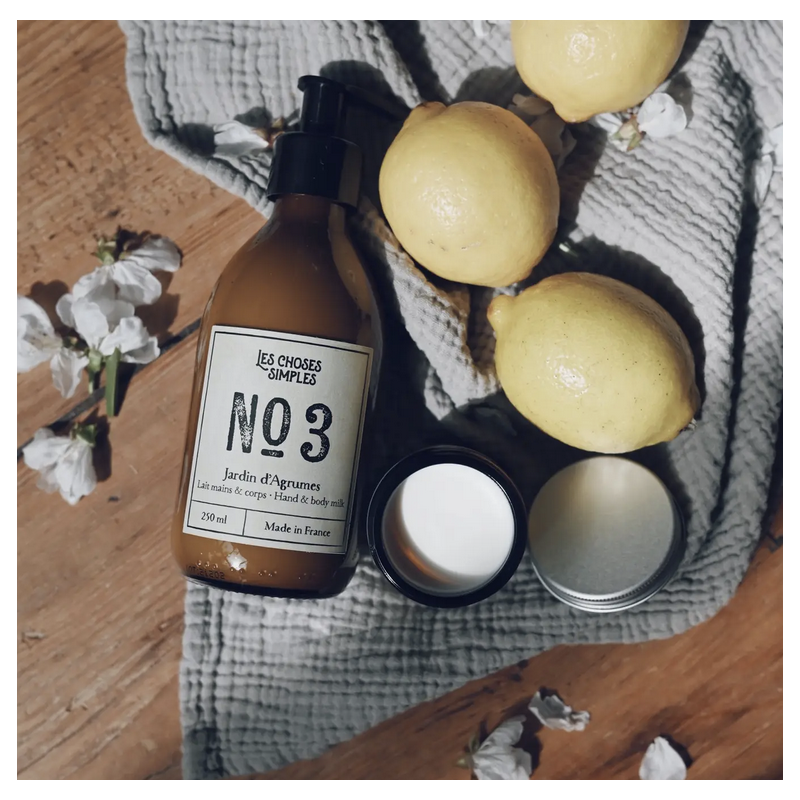 Offrez à votre peau un instant de douceur naturelle avec le Lait Corps & Mains Bio Jardin d’Agrumes n°3, fabriqué artisanalement en Provence à partir de 98,4 % d’ingrédients d’origine naturelle.